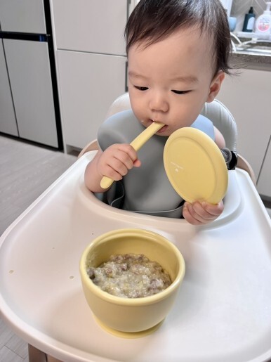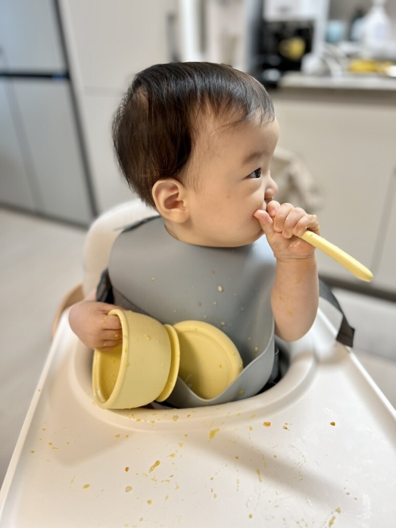 초기이유식 때는 사실 락앤락 바로한끼 이유식 용기에다가 먹여도 충분했었는데요. 중기 이유식으로 가니 아이가 이유식 용기를 갖고 안놔주고 장난을 치려하기에... 먹이기가 정말 힘들더라구요.
