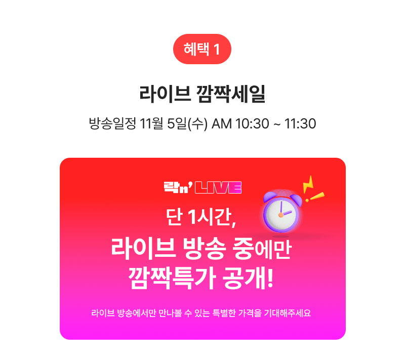 본 이벤트는 라이브 방송시간 동안에만 한시적으로 진행하는 프로모션입니다.